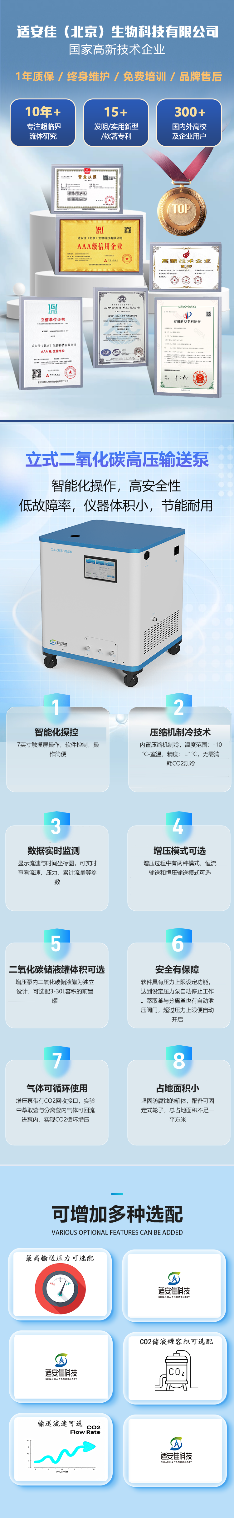 壓力:0-20MPa,流速:0-100ml/min,500ml內置前置制 冷罐,7寸觸摸屏操作,壓力上限設置,恒流恒壓輸送模 式